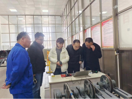 2024年3月11日下午14:30山东理工职业学院能源与材料学院常增光书记带领石美博士、孔令伟博士、房帅博士、王广洲博士等博士团队到济宁康华机电科技有限公司,交流洽谈校企合作事宜,围绕康华提出的涡流探伤新产品的研发等做了详细的交流,下步工作进展、每位博士下步分工制定工作,完成时间进行详细的交流,并观摩了公司动态室及给济矿集团阳城矿生产的两套主、副井提升机多绳钢丝绳探伤装置做了详细了解,常增光博士中科院上海光机所毕业后到山东理工职业学院机电学院任教期间,院领导就安排他和郝传海硕士为康华公司在激光永磁钢丝探伤系统课题组研发主要研究者。陪同交谈人员,鱼台县组织部人才办林旺主任、鱼台县科技局姜胜利副局长、公司陈端庭总经理、宋福工程师、韩超凡技术员、办公室人员参加